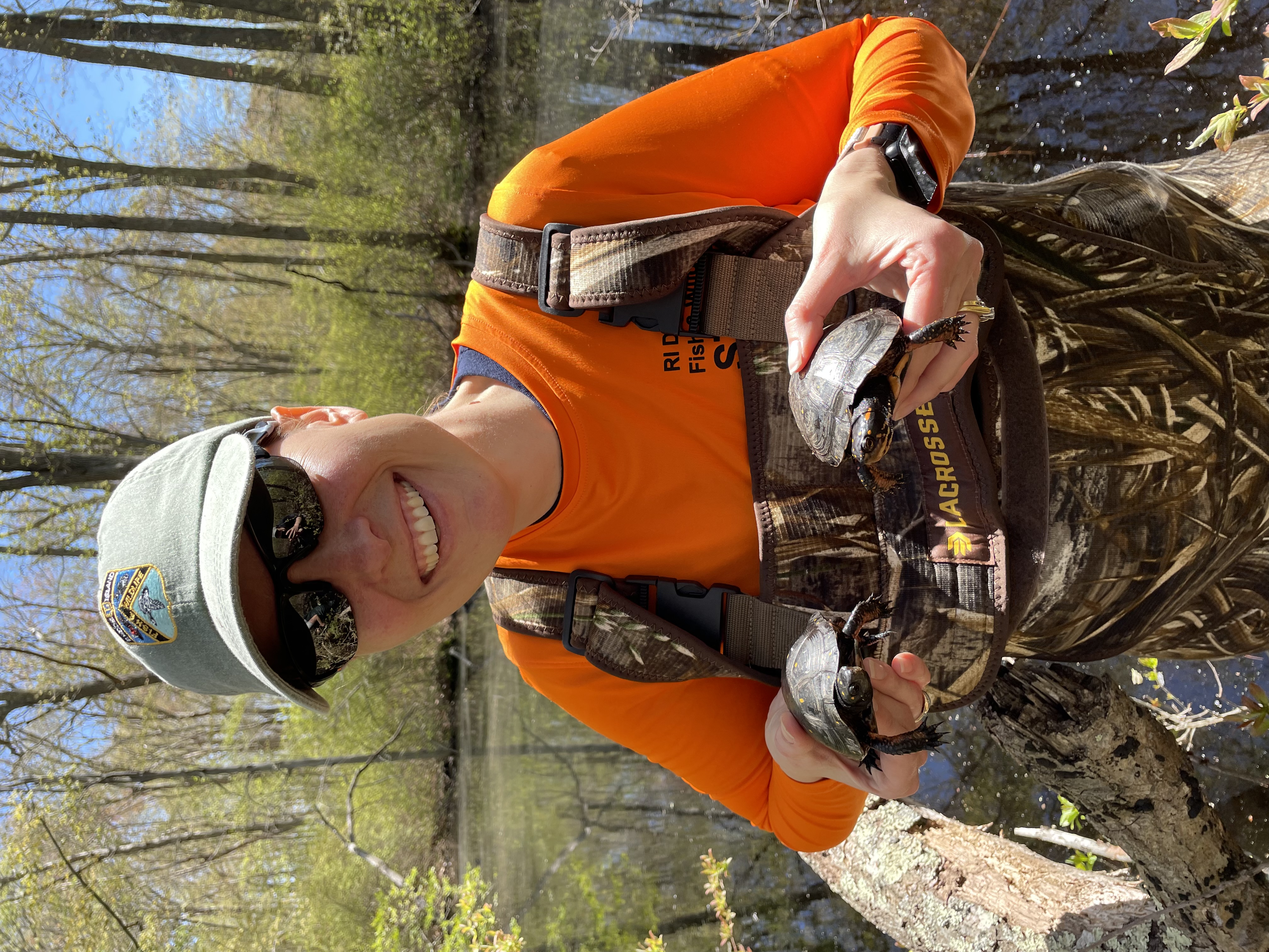 Mary Gannon is the Wildlife Outreach Coordinator for RIDEM's Division of Fish and Wildlife. Her work centers around spreading awareness of State wildlife conservation projects and educating Rhode Islanders of all ages about our state's unique critters. Her favorite part of her job is getting to tag along with wildlife biologists in the field, where she has had some very memorable experiences! In her free time, you can find Mary enjoying time with her family, tending her veggie garden, and restoring her boring suburban lawn to a vibrant native plant oasis for wildlife.